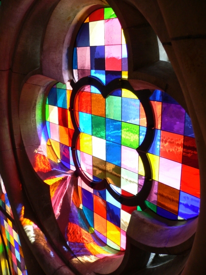 To create that piece Richter devised a mathematical formula to systematically mix permutations of the three primary colours and gray. The Cologne window is made of 11,500 four-inch "Pixels" cut from original antique glass in a total of 72 colours.